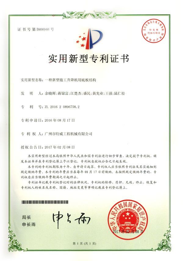 廣州市特威工程機械有限公司地處廣州市白云區(qū)神山鎮(zhèn),廣清高速神山出口附近,是一家施工升降機的專業(yè)生產(chǎn)廠家。公司成立于2011年,占地100000多平方米,注冊資金1060萬元,現(xiàn)有員工300余人其中工程技術人員33人,高級技術人員52人。